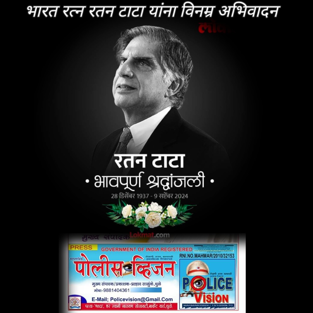 अलविदा रतन टाटा! सा.पोलीस व्हिजन धुळे व्दारा सुप्रसिद्ध भारतीय उद्योगपती रतनजी टाटांना भावपूर्ण श्रद्धांजली!!!