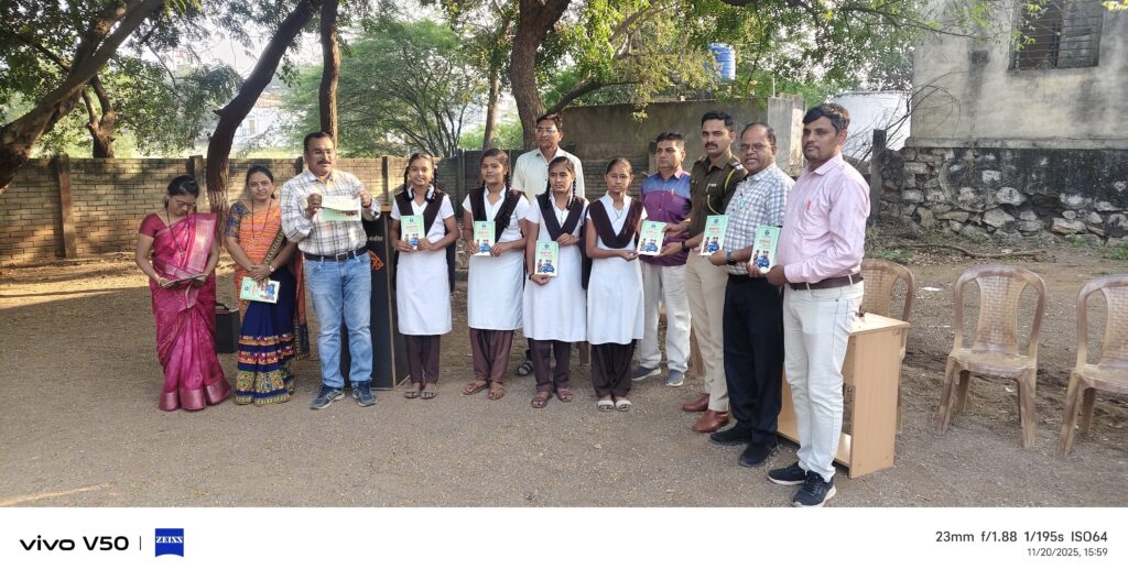 रानमळा…(धुळे..सा पोलिस व्हिजन क्राईम न्यूज ब्युरो)… धुळे जिल्हा पोलीस दलाच्या वतीने आधुनिक जगातील मुलांचे एक सुरक्षित पाऊल यासाठी अत्यंत महत्त्वपूर्ण अशी शालेय विद्यार्थ्यांसाठी सुरक्षेसाठी मोहीम हाती घेण्यात आली आहे. त्यासाठी सुरक्षेच्या पाऊलवाटा या पुस्तिकेचे धुळे जिल्हा पोलीस अधीक्षक कार्यालय वतीने पुस्तकाचे प्रकाशन करून ग्रामीण व शहरी भागातील शालेय व महाविद्यालयीन विद्यार्थ्यांना एक सुंदर पुस्तिकेचे प्रकाशन करण्यात आलेले आहे आणि ते प्रत्येक विद्यार्थ्याच्या हातात खाकी वर्दीतील पोलिसांनी प्रत्यक्ष भेटून दिली आहे याचे सर्वत्र स्वागत होत आहे. याबाबत आपल्या धुळे जिल्ह्याचे सक्षम पोलीस अधीक्षक श्रीकांत धिवरे (भा.पो.से) यांनी आपल्या मनोगतात आजच्या डिजिटल व आधुनिक युगात बालकांचे संरक्षण अत्यंत महत्त्वाचे आहे बालकांचे स्वसंरक्षण विधी संघर्ष ग्रस्त बालकांचे समुपदेशन ट्रॅफिक नियम सायबर सुरक्षा व प्रतिबंधात्मक उपाययोजना या विषयांकरिता मूलभूत मार्गदर्शनाकरिता हे पुस्तक उपयुक्त ठरेल आजच्या युगात स्वतःचे संरक्षण करण्याची जाणीव निर्माण करणे आणि त्यासाठी सक्षम करणे ही काळाची गरज निर्माण झाली आहे असे आपल्या प्रस्तावनेमध्ये त्यांनी म्हटले आहे. सुरक्षेच्या पाऊलवाटा या पुस्तकाच्या संपूर्ण माहितीचे संकलन व सहकार्य सहाय्यक पोलीस निरीक्षक रुपेश सतीश काळे, मानव संसाधन शाखा पोलीस अधीक्षक कार्यालय धुळे यांनी केले आहे. आज दिनांक 20 नोव्हेंबर 2025 रोजी धुळे तालुक्यातील रानमळा येथील एकनाथ महाराज हायस्कूल येथे हा कार्यक्रम राबविण्यात आला.सदर कार्यक्रम माननीय धुळे जिल्हा पोलीस अधीक्षक श्री.श्रीकांत धिवरे यांच्या मार्गदर्शनाने व माननीय अप्पर पोलिस अधीक्षक श्री अजय देवरे, माननीय पोलीस उपविभागीय अधिकारी,श्री राजकुमार उपासे, यांच्या मार्गदर्शनाखाली मोहाडी उपनगर पोलिस स्टेशन च्या पोलिस निरीक्षक श्रीमती शिल्पा पाटील मंँडम यांनी आपल्या पोलिस स्टेशनचे पोलिस उपनिरीक्षक मोहन पाटील, पोलिस हेड कॉन्स्टेबल नरेश चव्हाण, पोलिस काँन्स्टेबल मयुर गुरव यांनी प्रत्यक्ष एकनाथ महाराज हायस्कूल रानमळा ता जि धुळे येथील विद्यार्थी विद्यार्थीनींना सुरक्षा बाबत व सुरक्षेच्या पाऊल वाटा या पुस्तकात विविध सतर्कता बाबत माहिती दिली.यावेळी विद्यालयाचे मुख्याध्यापक बापूसाहेब के. पी. पाटील यांनी विद्यार्थी सुरक्षा बाबत महत्त्वपूर्ण भाषण केले. व पोलीस दलाने विद्यार्थ्यांसाठी सुरक्षा कारणास्तव ही मोहिम सुरू केली म्हणून आभार व्यक्त केले.यावेळी विद्यार्थ्यांना मोहाडी उपनगर पोलिस स्टेशन च्या पोलिस उपनिरीक्षक मोहन पाटील यांनी आपल्या मनोगतात धुळे जिल्हा पोल
